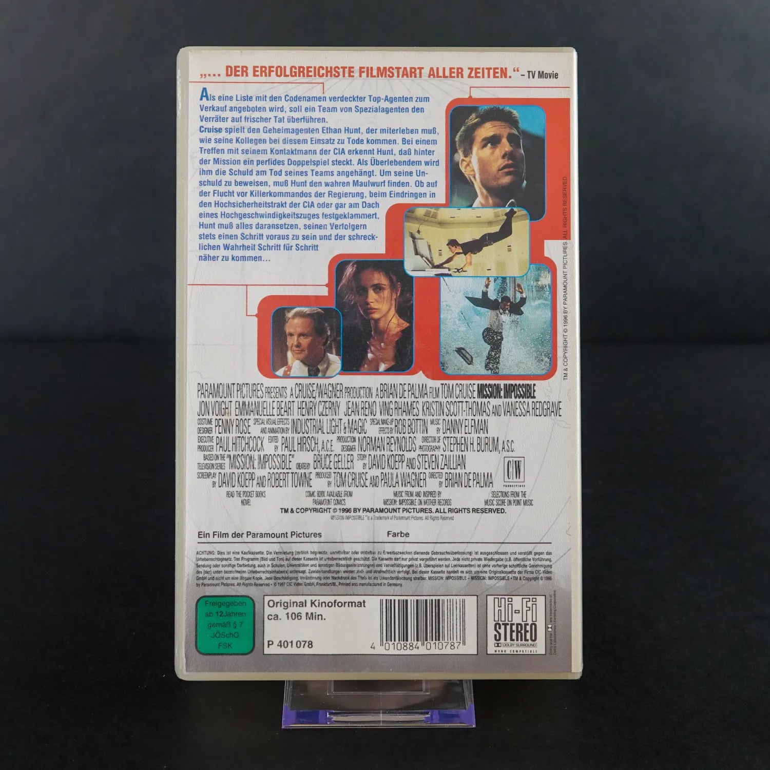 Erlebe die legendäre "Drahtseil-Szene" und das Finale auf dem TGV-Zug im originalen Analog-Look der 90er. Zustands-Info: Dieses Exemplar ist ein Highlight für Zustandssammler. Sowohl die Kassette als auch die Hülle weisen nur sehr minimale Gebrauchsspuren auf und sehen fast aus wie neu. Ein so gepflegtes Tape dieses 90er-Jahre-Klassikers findet man selten. Diese Nachricht vernichtet sich nicht in 5 Sekunden.