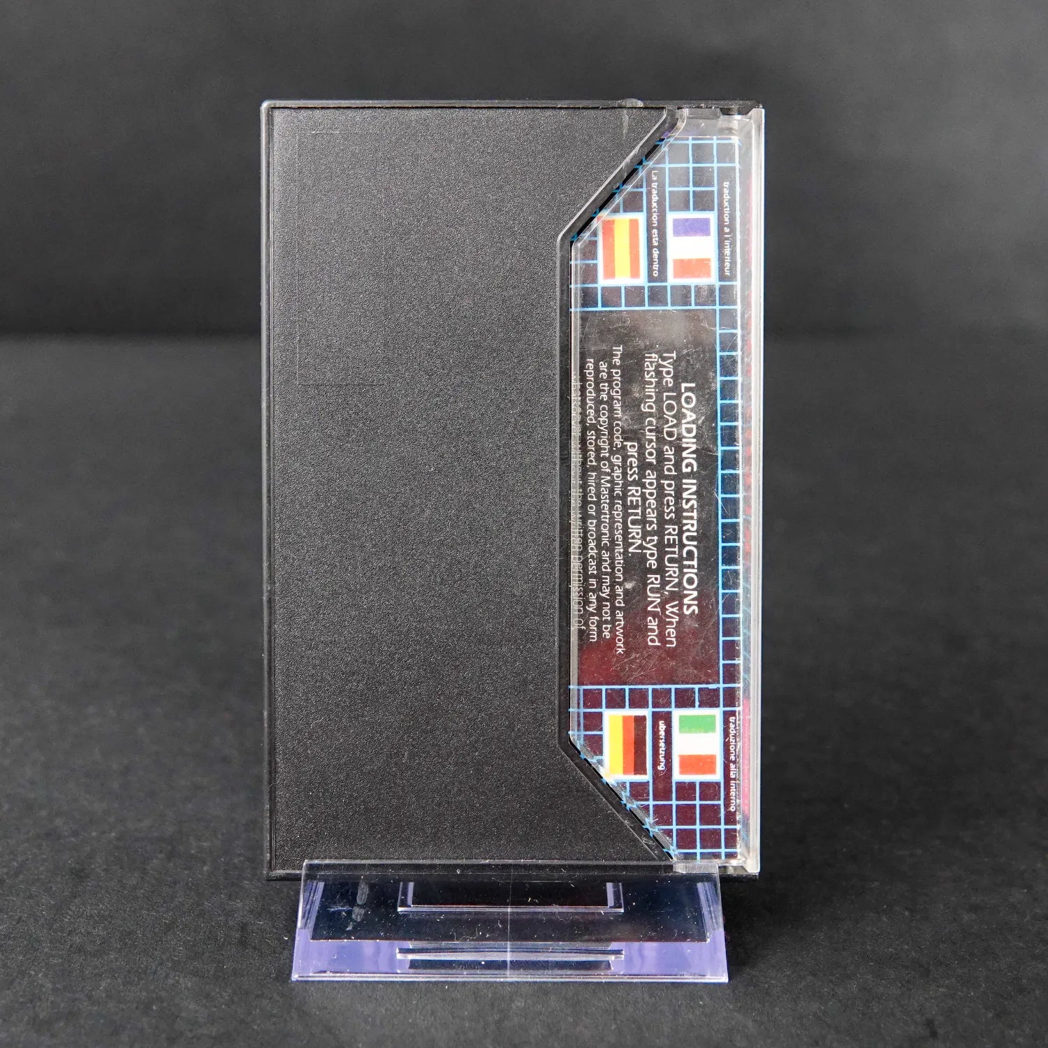 Das Spiel kommt in der originalen Kassettenhülle inklusive dem kultigen Inlay-Cover. Mastertronic-Spiele sind ein Stück Videospielgeschichte, da sie damals das Gaming für jeden erschwinglich machten. Ein einfacher, aber süchtig machender Highscore-Jäger, der in keiner C16-Sammlung fehlen sollte.